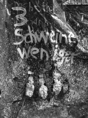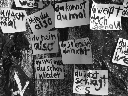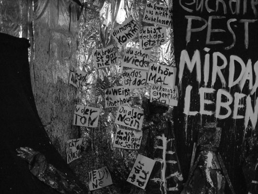 Als Zeichen und Protest gegen die Gewalttätigkeiten gegen meine künstlerische